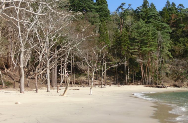 気仙沼大島北東端の対岸、唐桑半島の西側の付け根にある長さ230m幅15mの小さな砂浜です。砂が乾いている時に踏むと「クックッ」と鳴ることから名付けられたと言われています。その音の秘密は砂の中に含まれている細かい石英の粒。それが擦れる時、音を出しているのです。鳴砂は学術的にも貴重で平成23年には国の天然記念物に指定されています。降雨などで鳴砂を体験できない場合、唐桑半島ビジターセンターの紹介コーナーでもその音を聞くことができます。