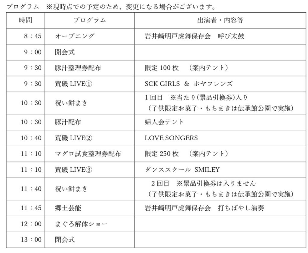 ※まつり詳細は、当日会場プログラムまたはチラシをご確認ください。