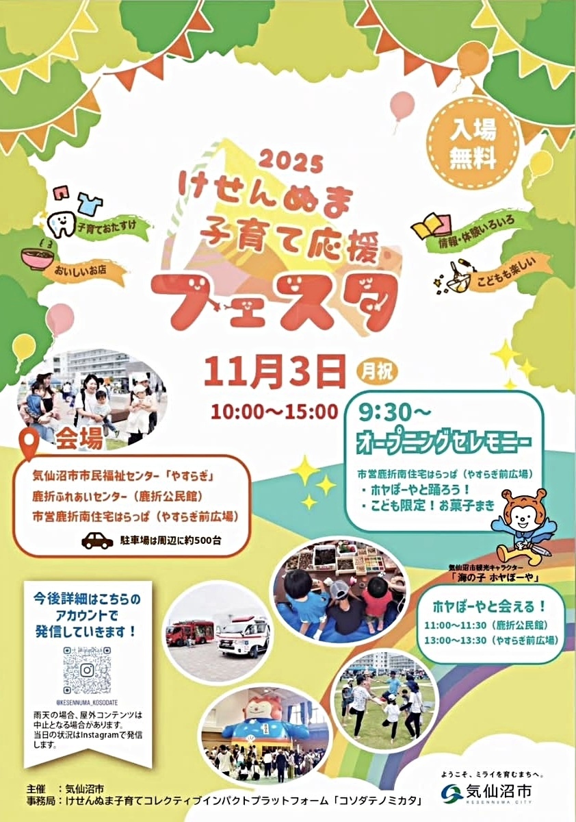 内容:おいしいごはんや楽しい遊び、子育てに関する情報が盛り沢山のイベントが今年も開催★ホヤぼーやも会場に遊びに行きます!