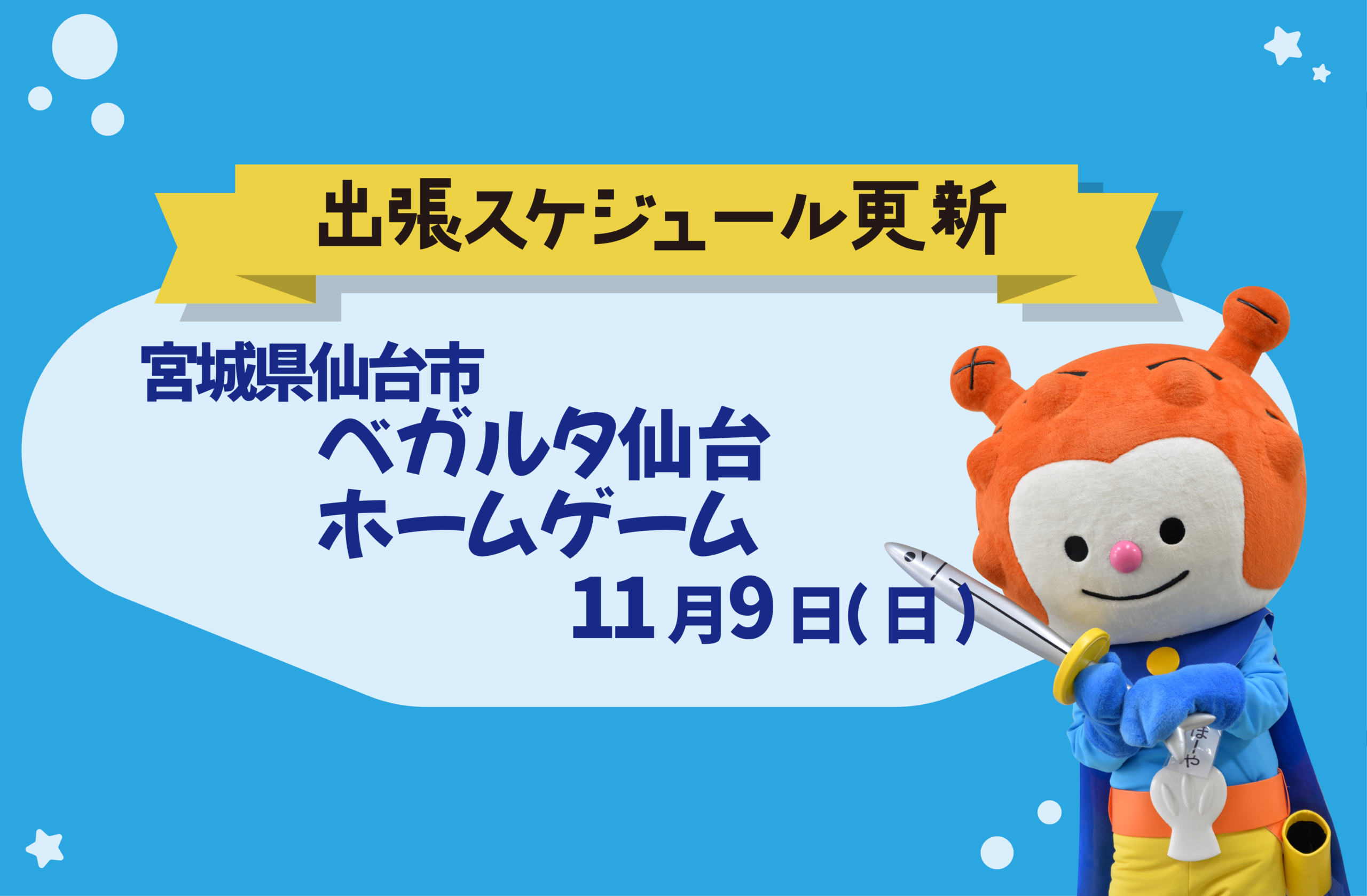 当日は、気仙沼市観光キャラクター「海の子 ホヤぼーや」も応援団の一員としてスタジアムに駆けつけ、ベガルタ仙台を全力で応援します!