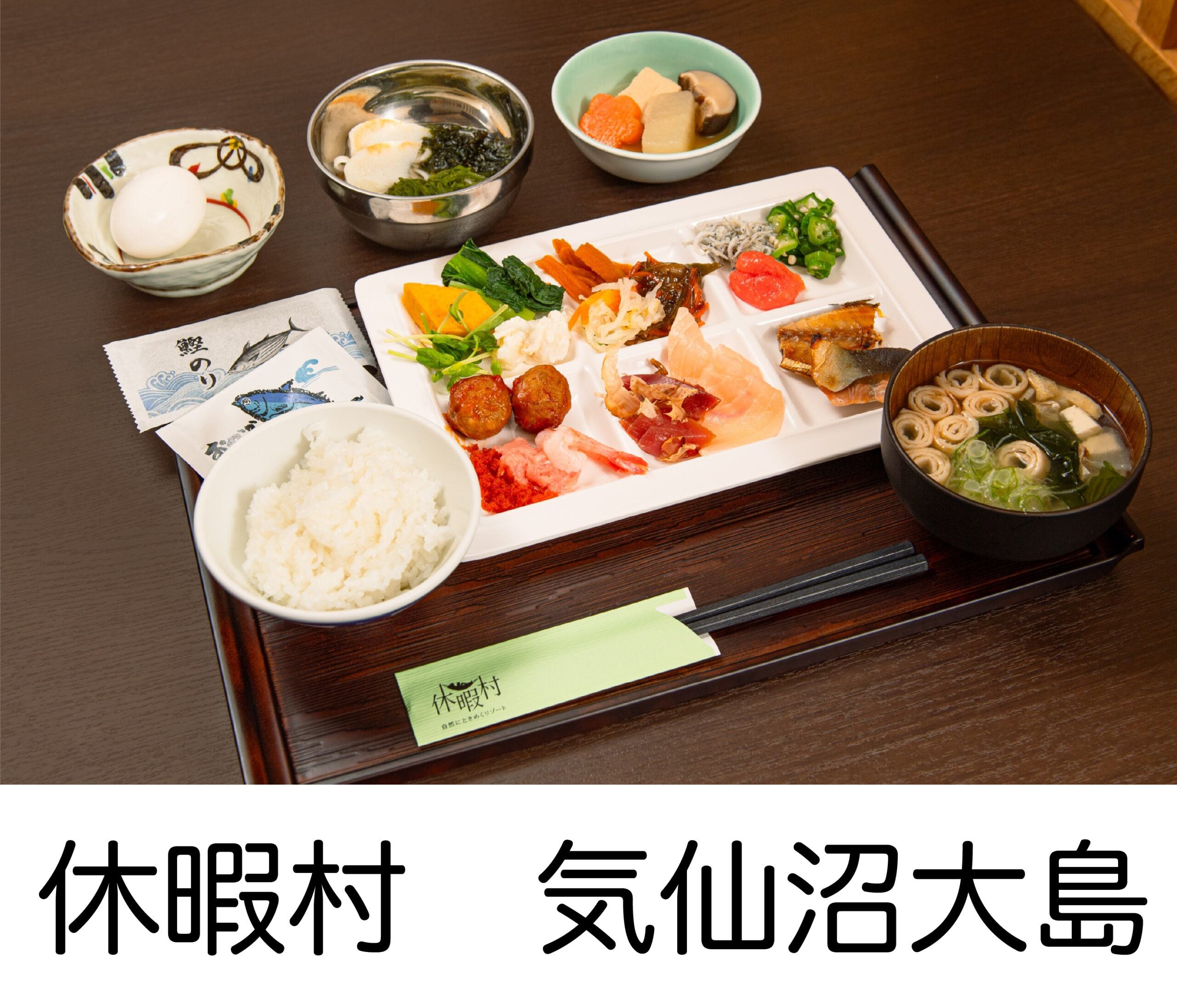 2020年4月にリニューアルオープンした休暇村気仙沼大島の朝食は完全ビュッフェ形式。ホテルビュッフェ風で、いつもの朝ごはんメニューのほかに白石うどんや笹かま、ずんだなど宮城県の名物が食べられます。