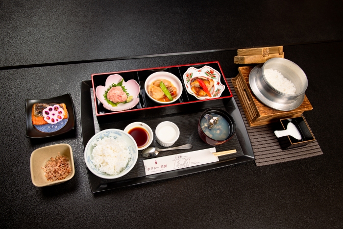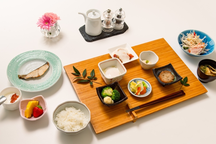 老舗割烹旅館をルーツに持つこのホテルの朝食は、こだわりの和定食スタイル。