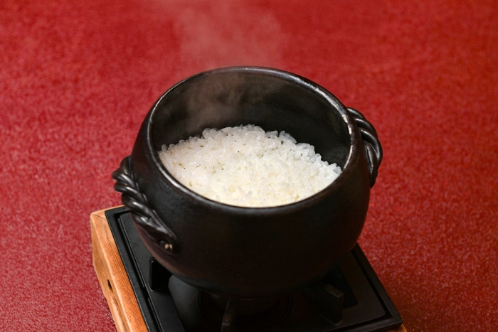 蓋を開けると、つやつやなお米と甘い香りにうっとり。土鍋炊きならではのおこげも楽しめます。