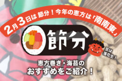 恵方巻き・海苔のおすすめ情報をご紹介2月3日は節分!今年の恵方は「南南東」!2026年の節分は2月3日(火)。 もうすぐ節分ですね!気仙沼をはじめ、この辺りの地域では豆まきに「 -