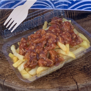【メニュー】岩井崎塩のフライドポテト、ダシたこ焼き(気仙沼醤油使用)、三陸タラフライ、フィッシュ&チップス