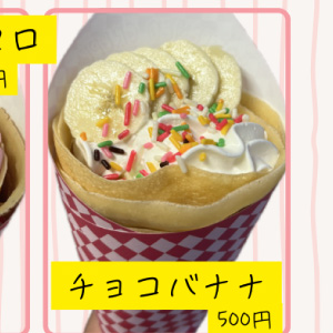 【メニュー】クレープ(ハムチーズなど)ドーナツ、かき氷、ソフトドリンク