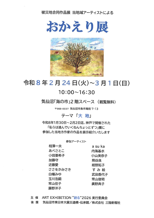 気仙沼「海の市」にて、被災地合同作品展 「おかえり展」が開催されます!