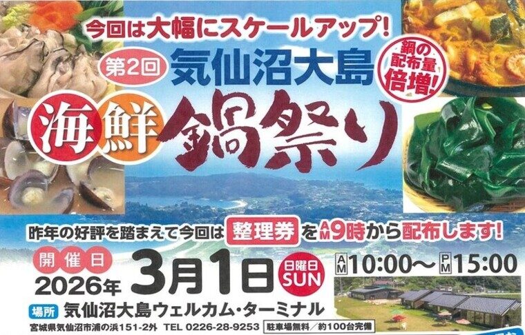 気仙沼大島ウェルカム・ターミナルにて「第2回気仙沼大島 海鮮鍋祭り」を開催いたします!