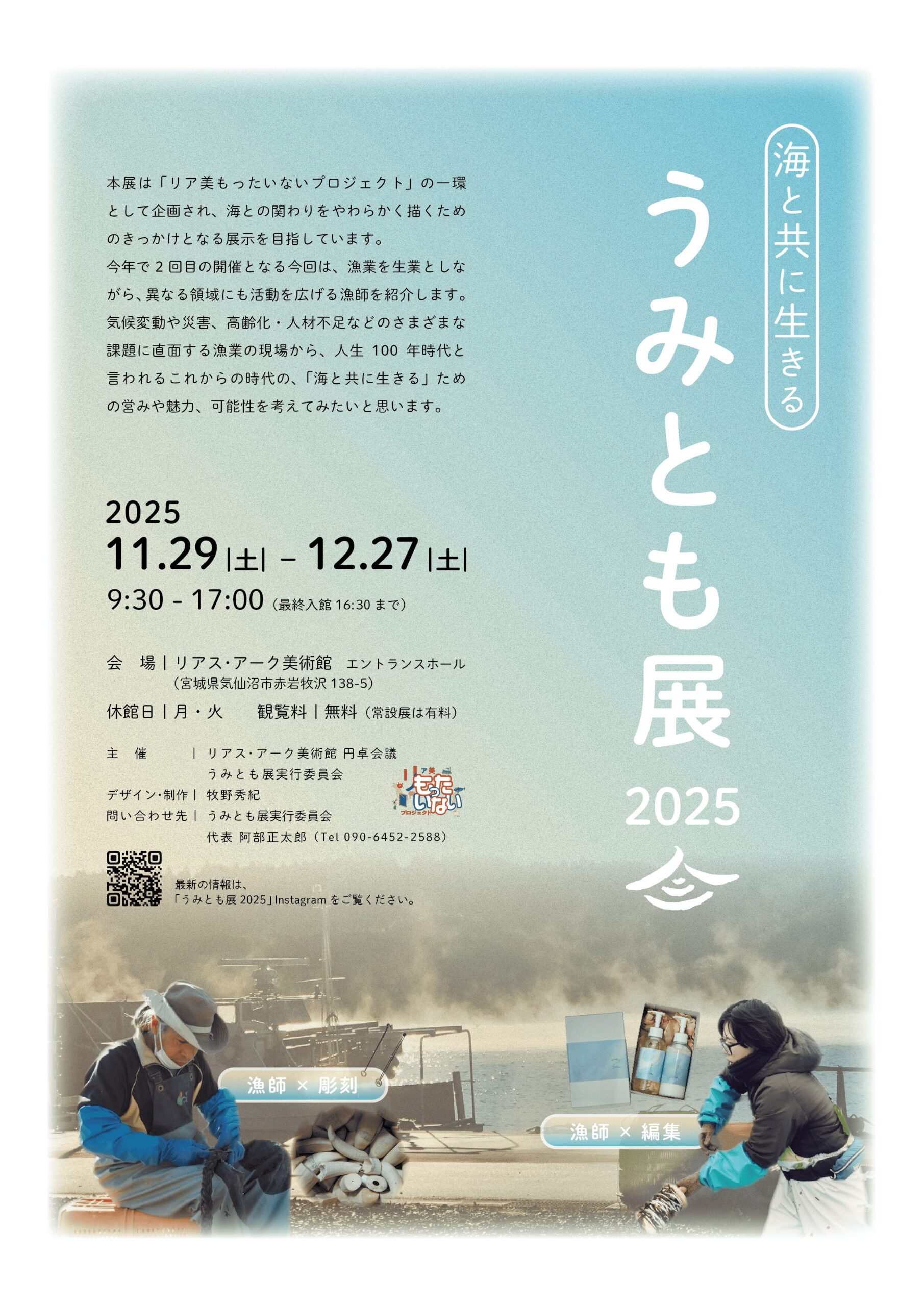 リアス・アーク美術館の円卓会議による「リア美もったいないプロジェクト」で企画された「うみとも展2025」は、漁業を生業としながら、異なる領域へ活動を広げる漁師を紹介する展覧会です。