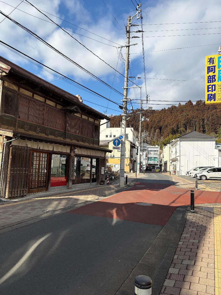 お店の背後にある崖。これは明らかにかつて波に削られた海岸段丘だったところです。南町はかつて海でした。明治時代以後に埋め立てられた比較的新しい土地です。八日町の市役所方面に続く一方通行の道は、かつての波打ち際でした。